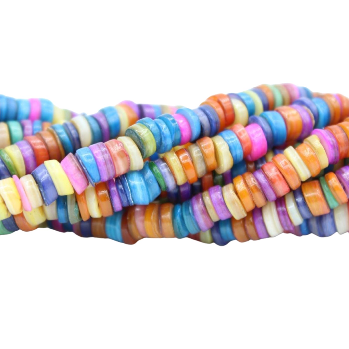 Shell Spacer Bead – 6 x 3mm – Multi – 40cm Strand. 6 x 3mm bead size. Dyed natural shell.