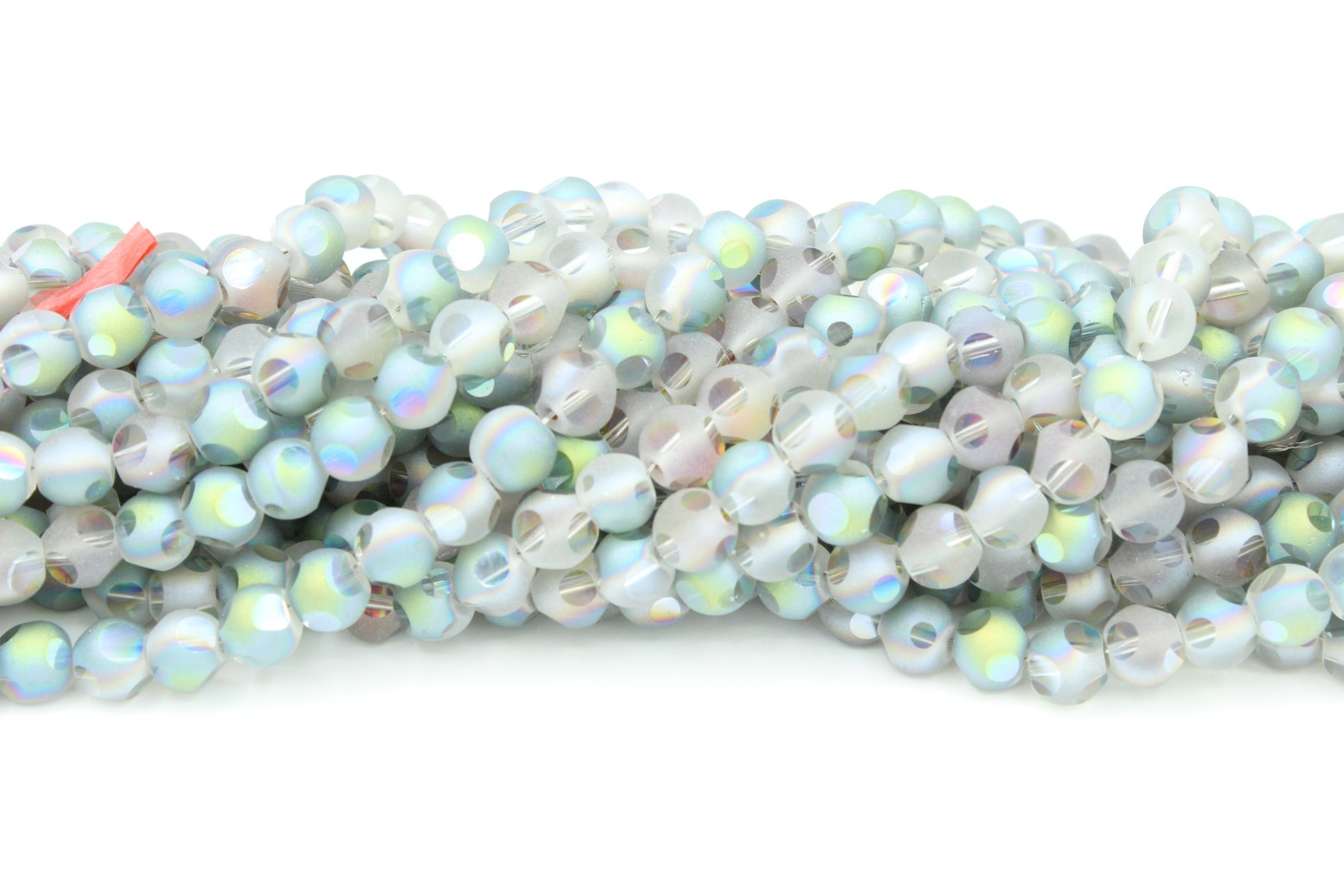 Side Cut – 8mm – 45cm Strand – Irri Green. Glass bead.