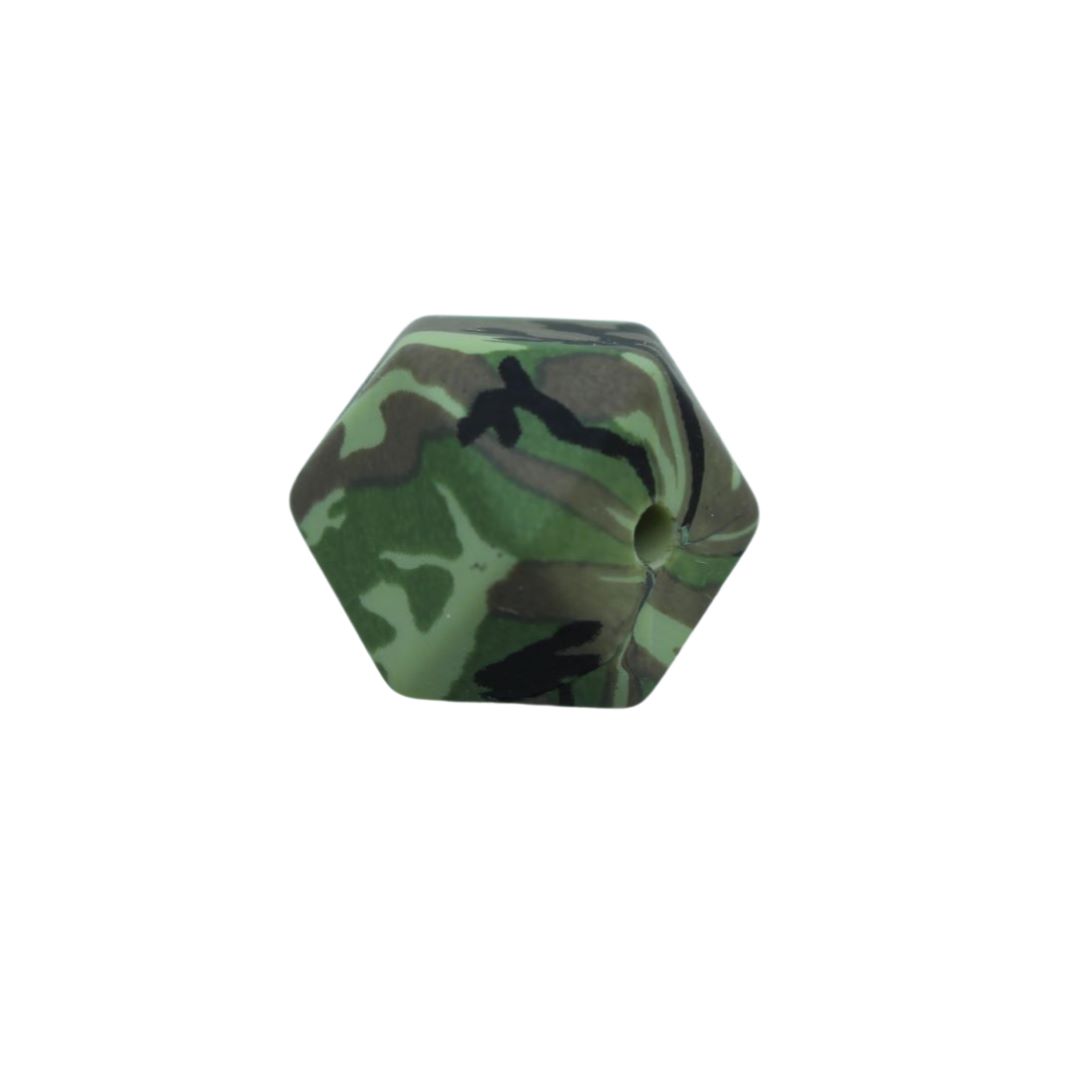 Silicone Faceted Cube Bead – 14mm – Camouflage.
