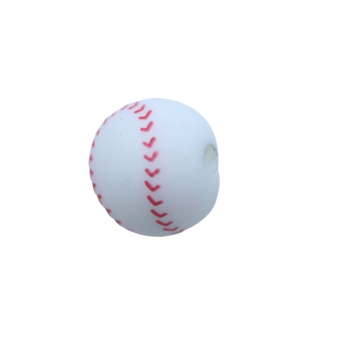Silicone Round Bead – 12mm – Baseball.