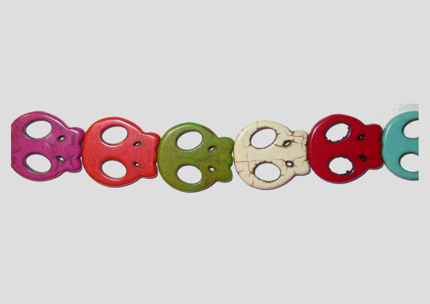 Skull Flat – Howlite – 22mm – Multi Colour – 40cm Strand. Dyed. 22 x 20mm Skull size.