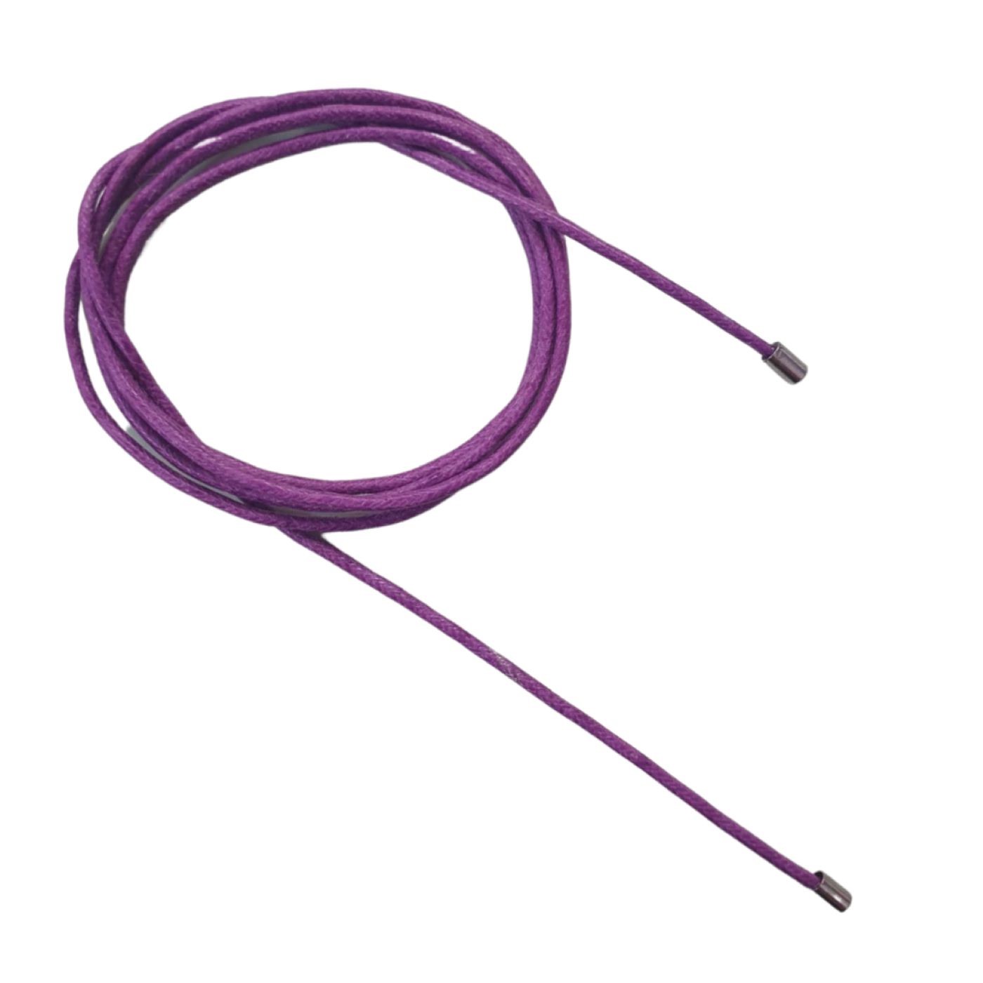 Slip Knot Cords- 70cm – Purple. Cord length has metal caps attached to each end. Polyester. 70cm from end to end.