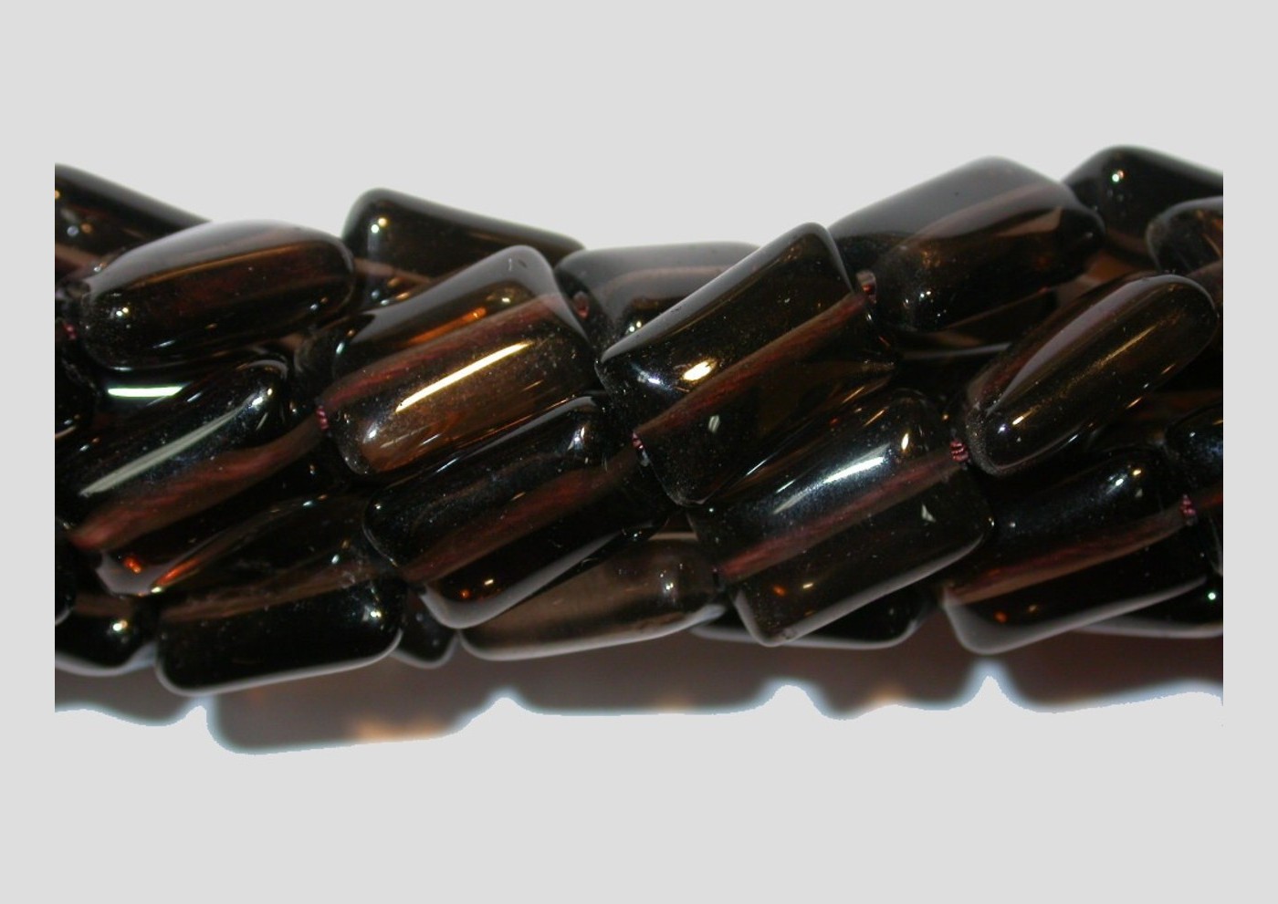 Smokey Quartz – 11mm Rectangle – 40cm Strand. 11 x 8mm bead size. Please contact us to purchase individual pieces.