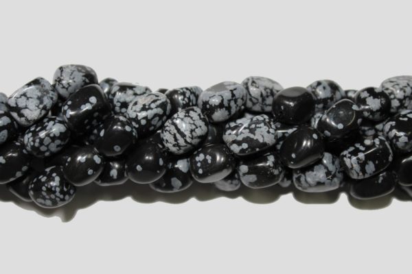 Snowflake Obsidian – Nugget – 10 x 8mm – 38cm Strand. 10 x 8mm bead size. Please contact us to purchase individual pieces.