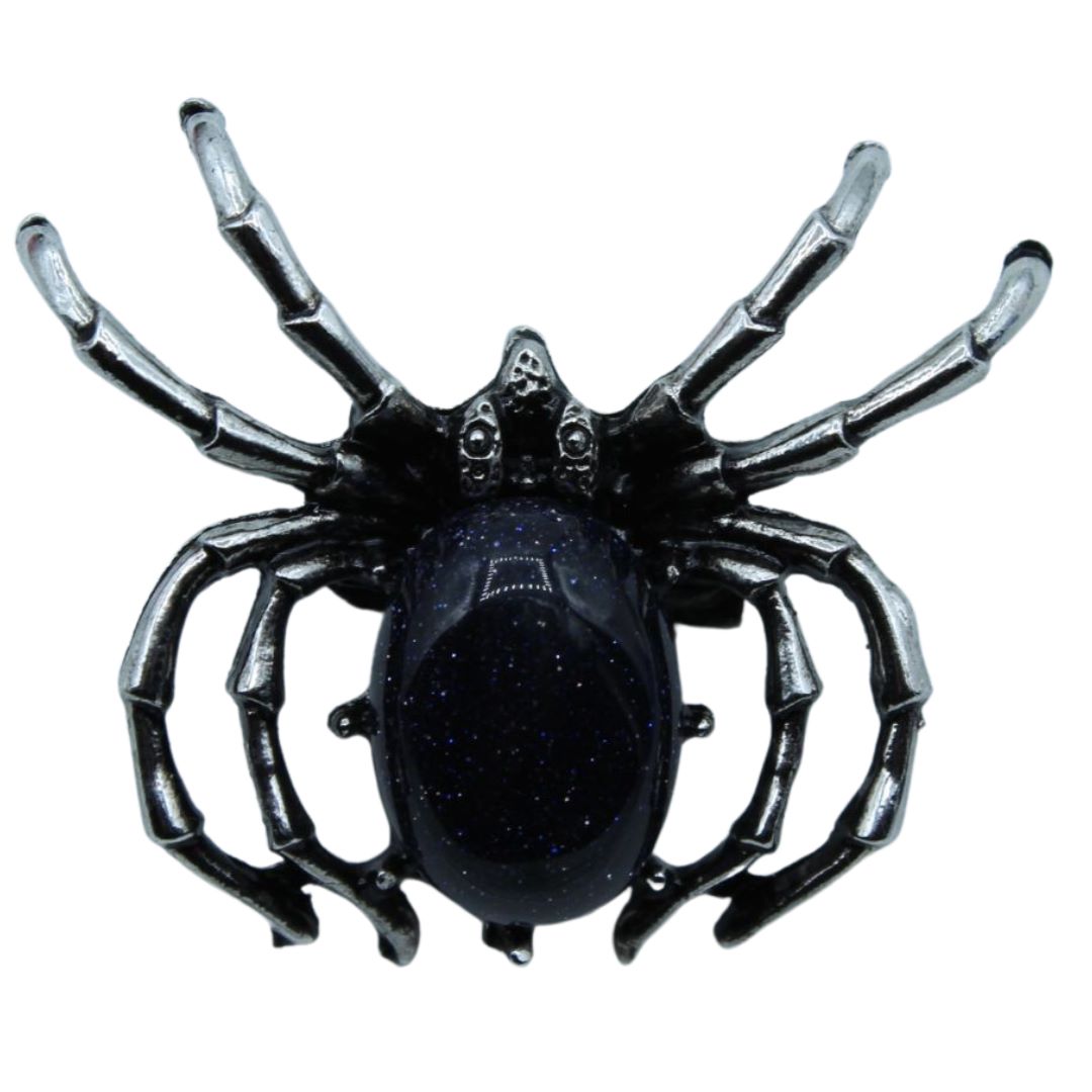 Spider Pendant / Brooch / Syn Blue Sandstone – 45mm. 45 x 35mm Spider size. 18 x 13mm Oval Cabochon. Syn Blue Sandstone – Man Made. Gun Metal colour pendant.