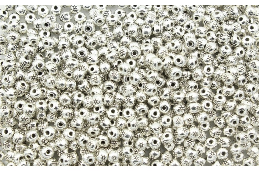 Spot Bead – 4mm – Antique Silver. Quality product. Metal Bead. Plated.