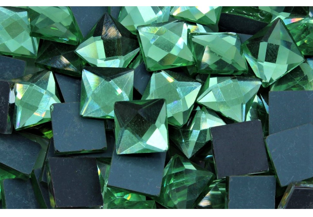 Square – 12mm – Green. Glass. Faceted Top. Flat Back. No hole.
