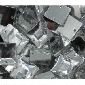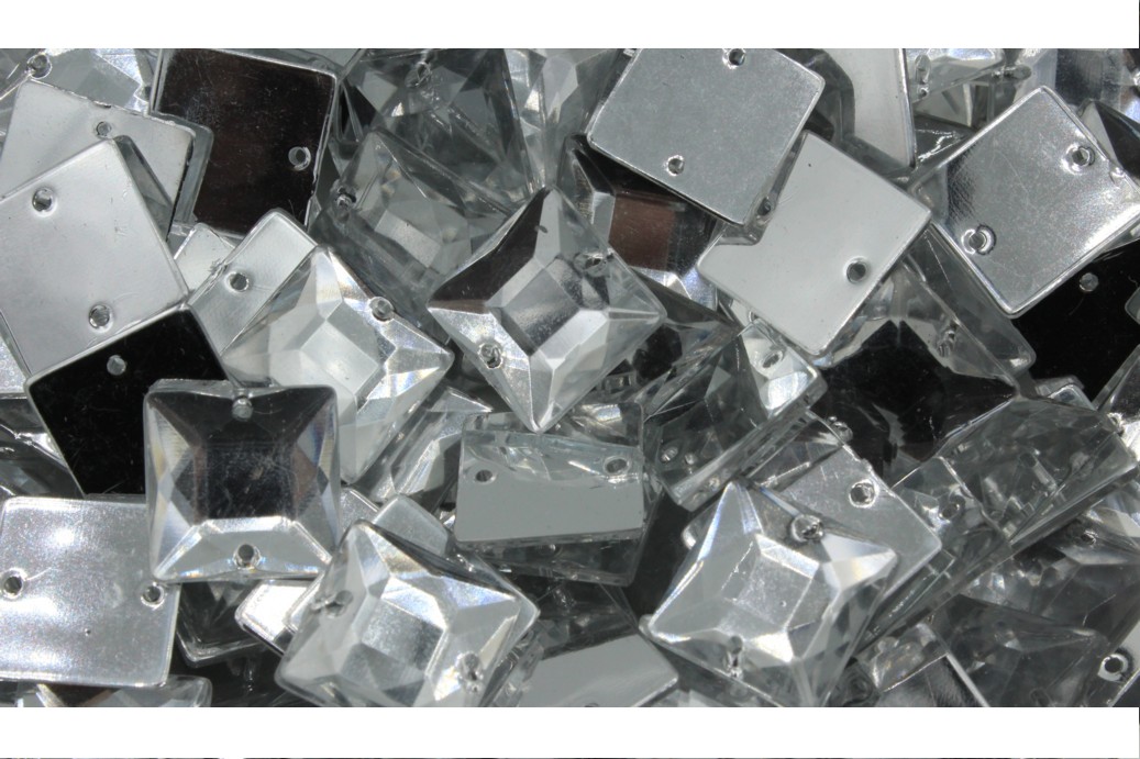 Square – 14mm – Clear. Clear / Silver back. 2 Holes. Plastic.