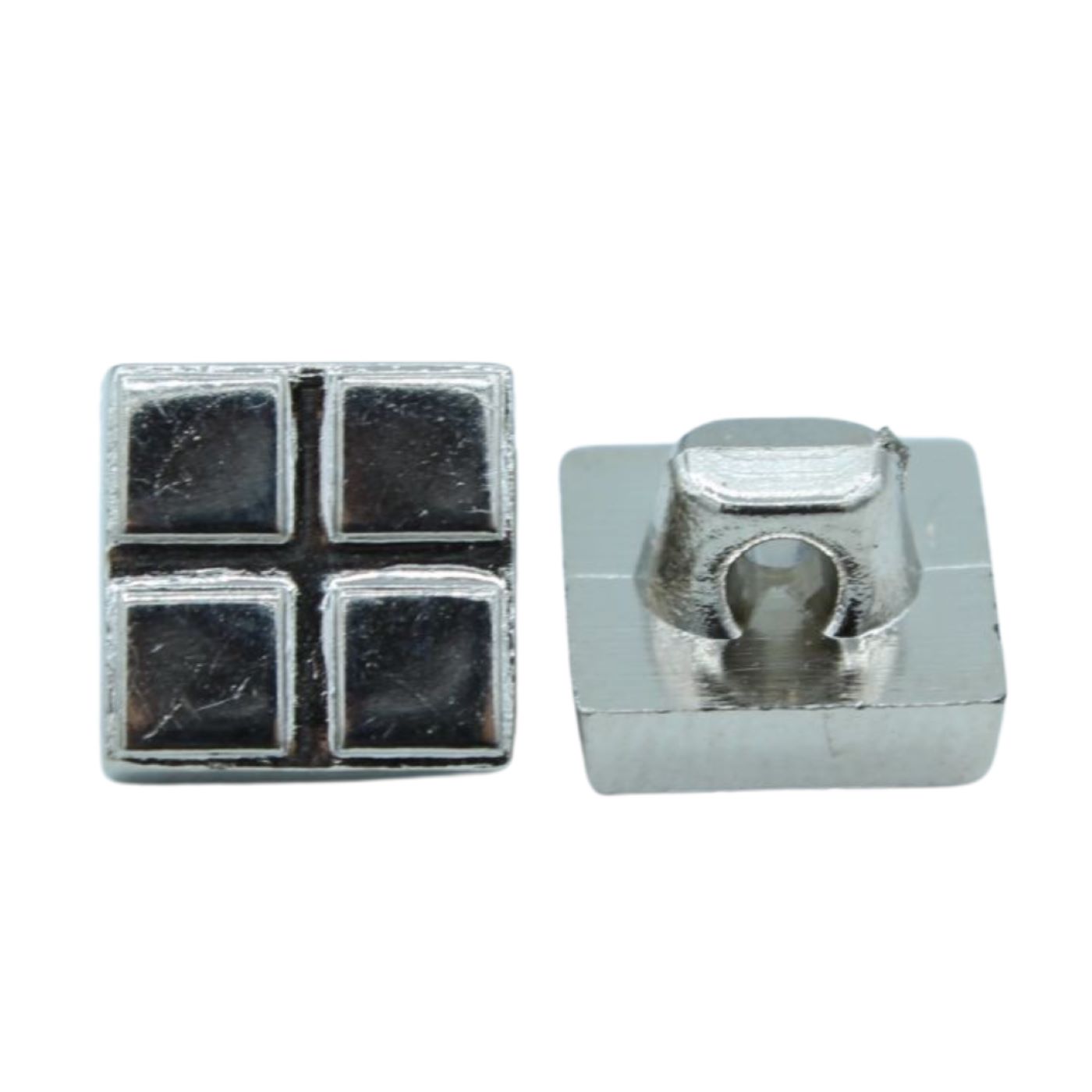 Square Tile Button – 10mm – Antique Silver. Plastic.