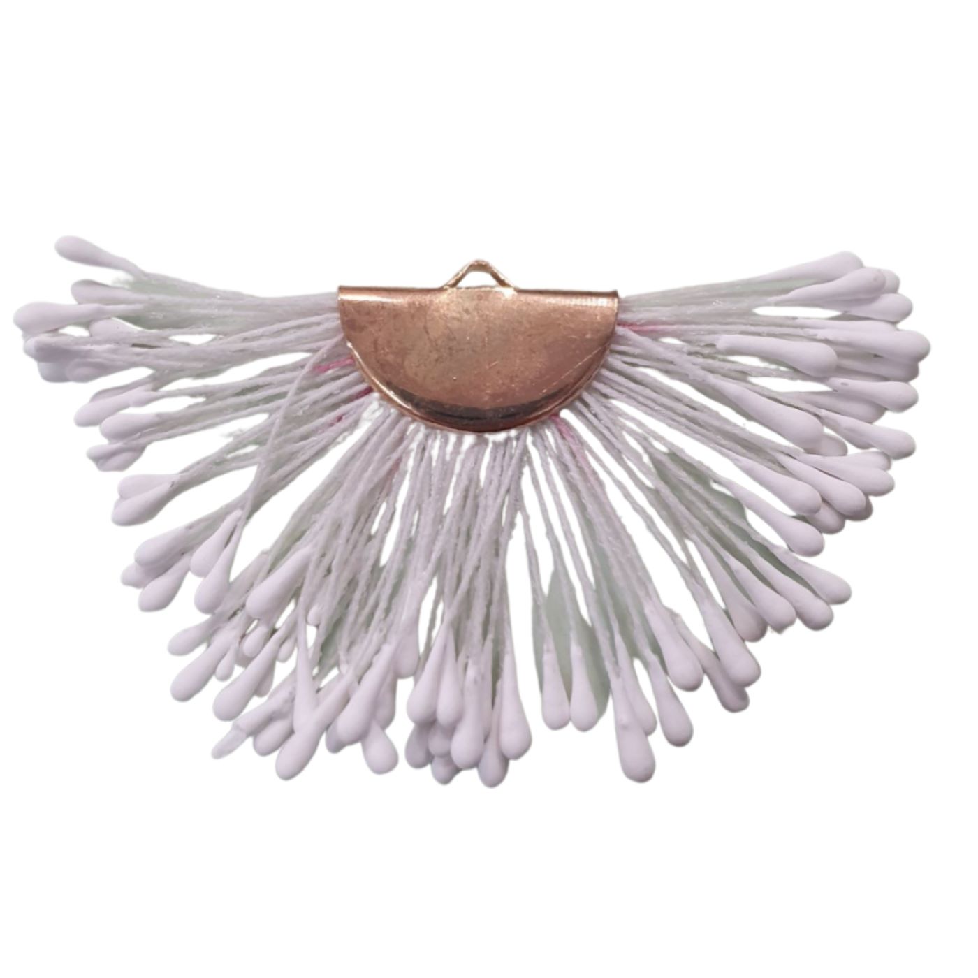 Stamen Cluster – 6 x 3.5cm – White. Gold coloured mount.