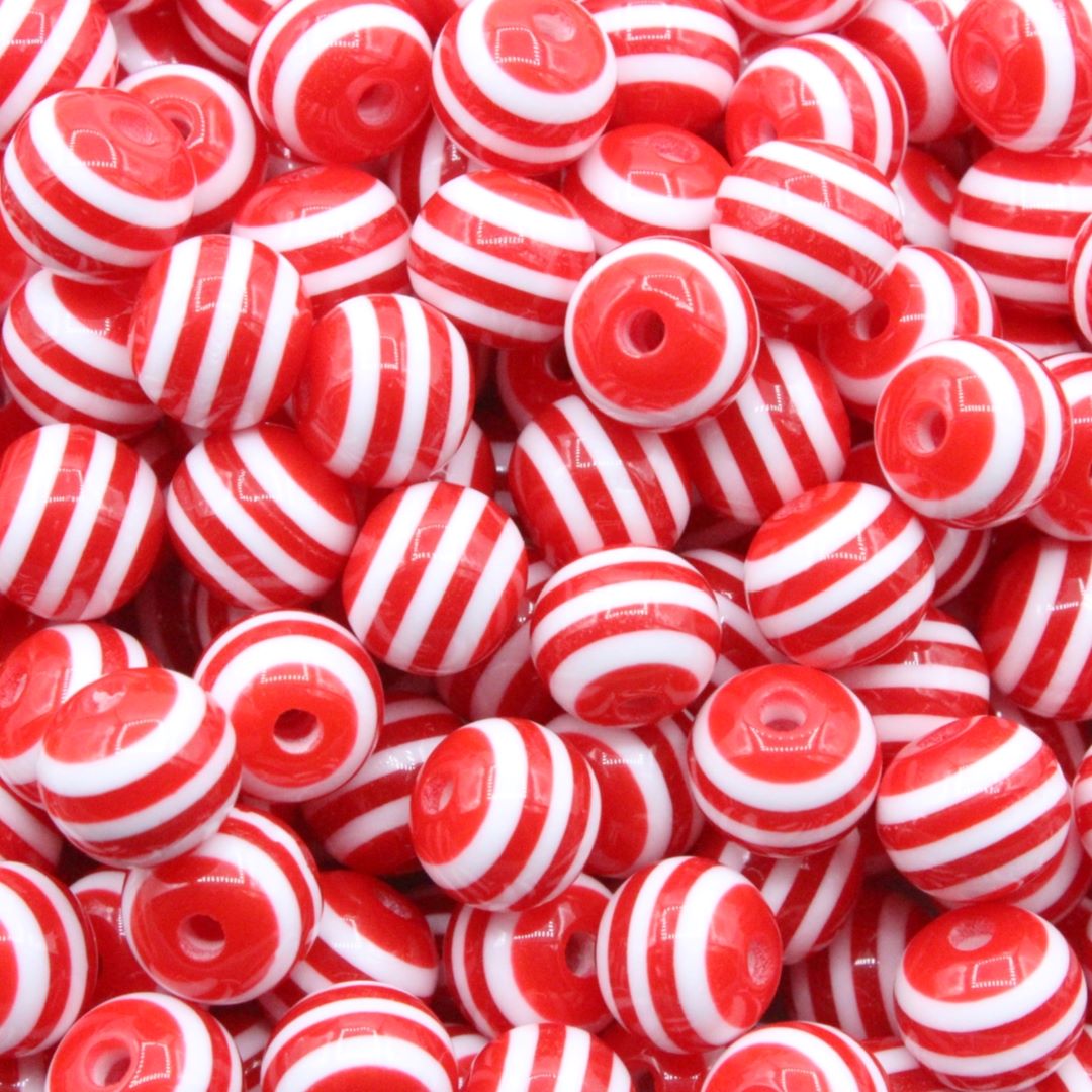 Striped Round Candy Bead – 10mm – Red.
