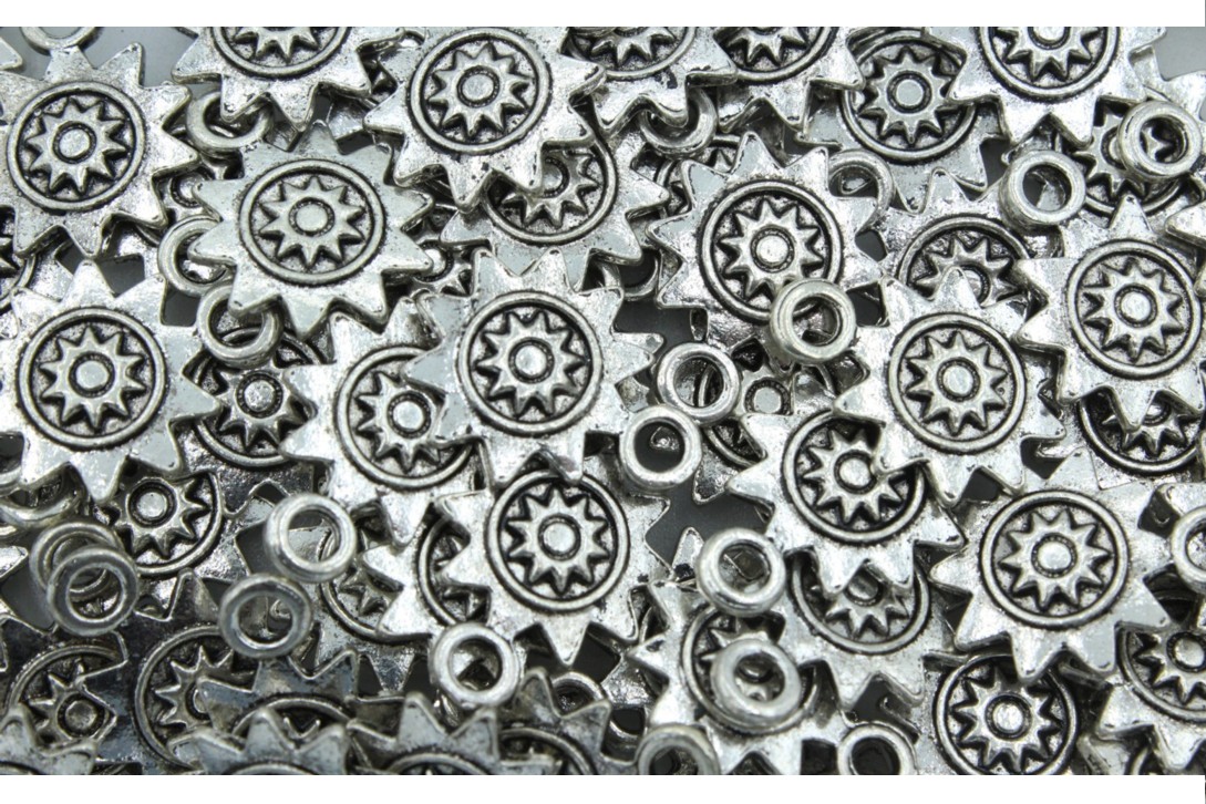 Sun – 16 x 12mm – Antique Silver. Quality product. Metal Charm. Nickel Free. Plated.