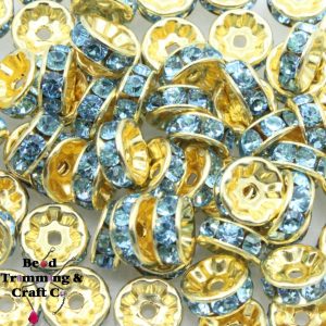 Swarovski 177505 – Rondelle – Round – 5mm – Aqua / Gold.