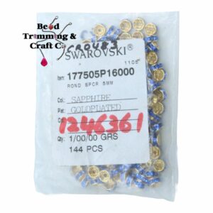 Swarovski 177505 – Rondelle – Round – 5mm – Sapphire / Gold.