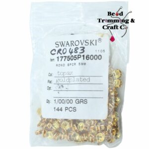 Swarovski 177505 – Rondelle – Round – 5mm – Topaz / Gold.