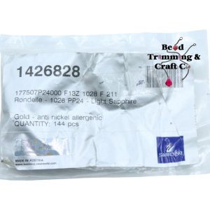Swarovski 177507 – Rondelle – Round – 7mm – Light Sapphire / Gold.
