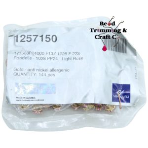 Swarovski 177508 – Rondelle – Round – 8mm – Light Rose / Gold.