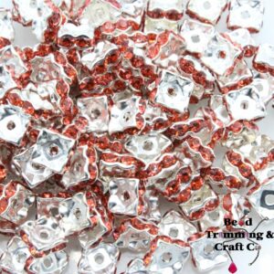 Swarovski 177608 – Rondelle – Square – 8mm – Padparadscha / Silver.