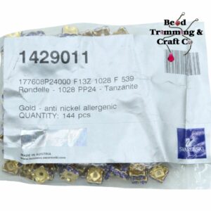 Swarovski 177608 – Rondelle – Square – 8mm – Tanzanite / Gold.