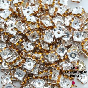 Swarovski 177608 – Rondelle – Square – 8mm – Topaz / Silver.