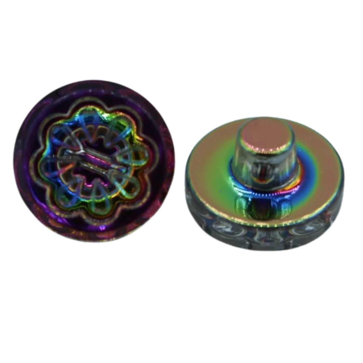 Swarovski 3320/4 – Button – 10mm – Vitrail Medium. Genuine Swarovski Crystal. Flat / Round Shape. Shank on back. Although brand new, there may be slight scratches and blemishes on crystal due to age.