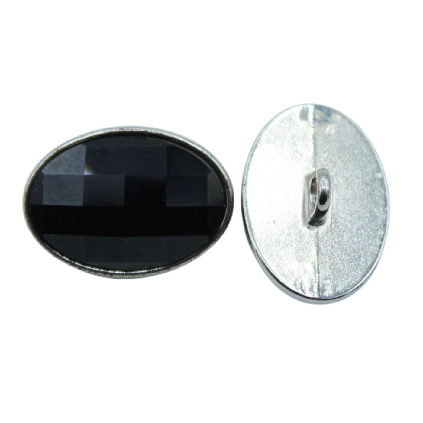 Swarovski 3817 – Button – 16 x 11mm – Jet / Antique Silver. Genuine Swarovski Crystal. Chessboard Oval Button. Metal Shank. Size – 16 x 11mm Oval.