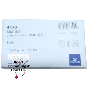 Swarovski 4470 – Square Cushion Cut – 10mm – Light Smoked Topaz F.