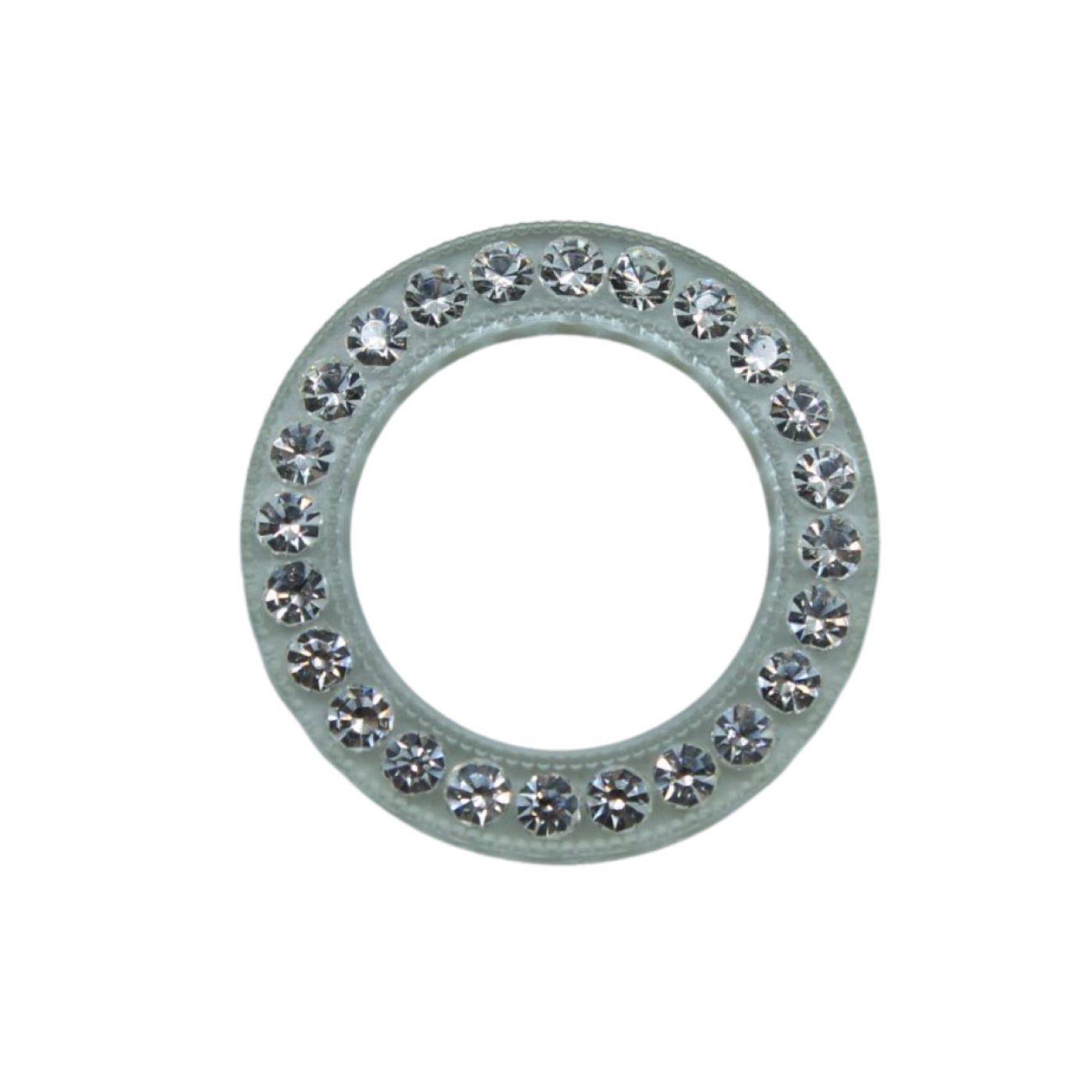 Swarovski 51301 – Buckle – Round – 24mm – Crystal / Clear. Plastic backing. Size 24mm. Transparent backing. No inner bar. Genuine Swarovski Crystal.