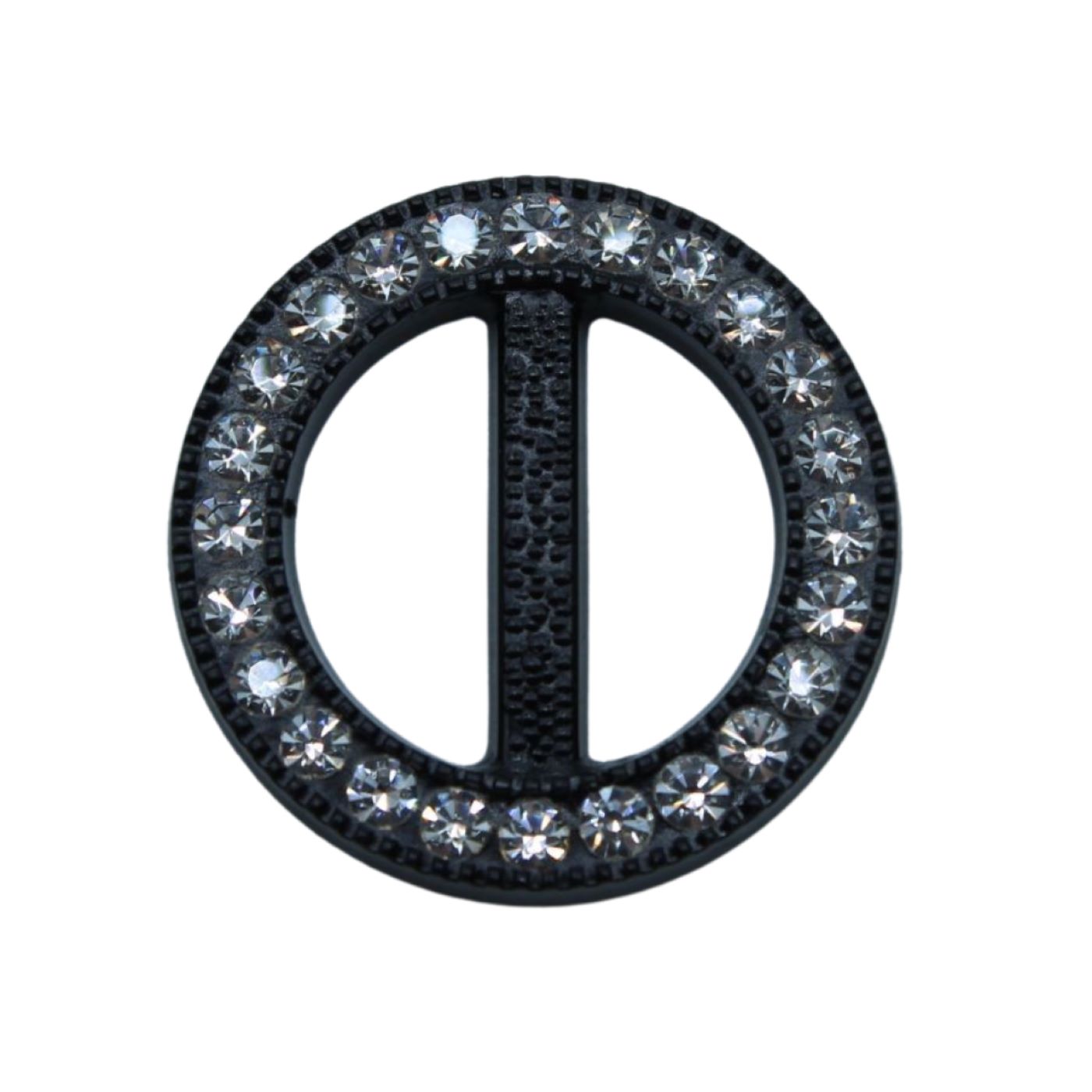 Swarovski 51304 – Buckle – Round – 25mm – Crystal / Black. Plastic backing. Size 25mm. Genuine Swarovski Crystal.
