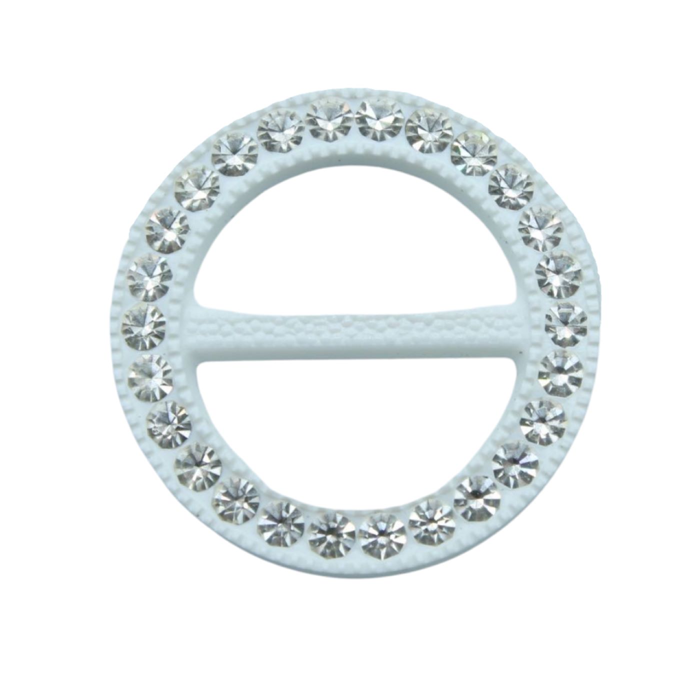 Swarovski 51304 – Buckle – Round – 28mm – Crystal / White. Plastic backing. Size 28mm. Genuine Swarovski Crystal.