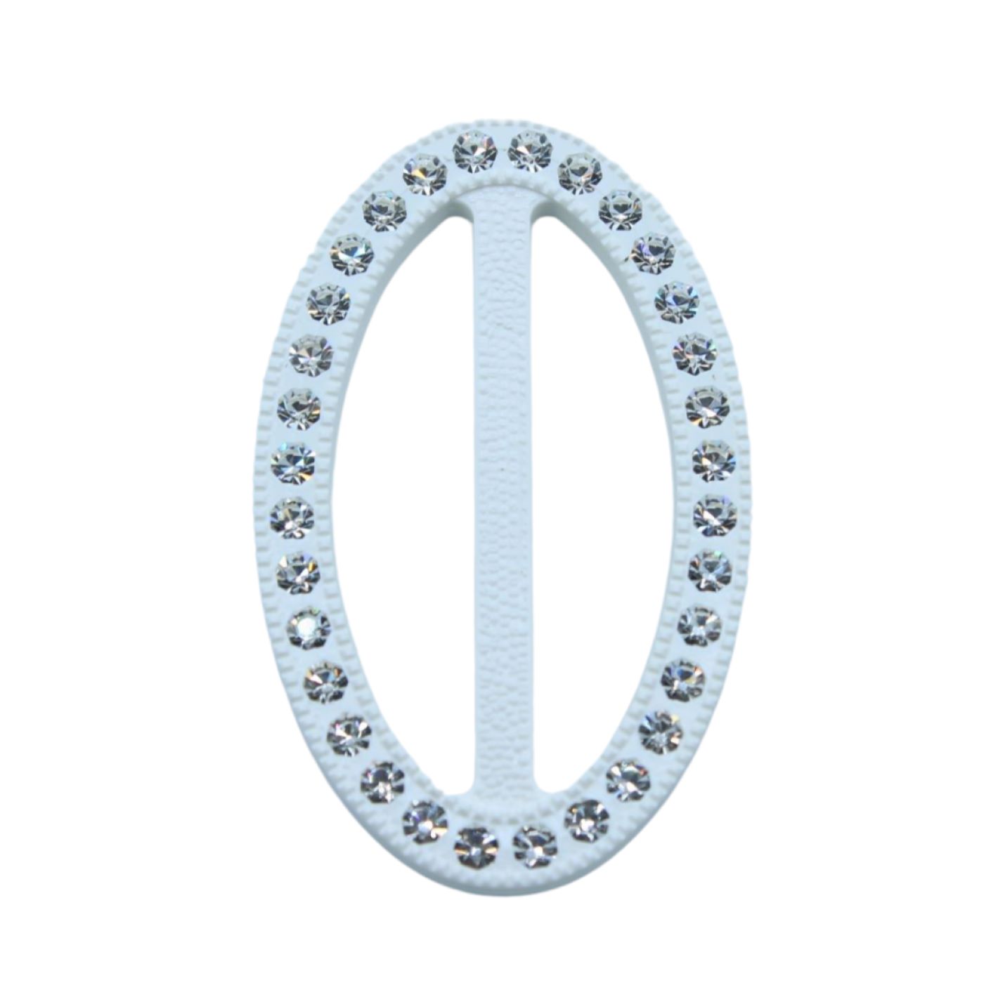 Swarovski 51309 – Buckle – Oval – 53mm – Crystal / White. Plastic backing. Size 53x 33mm. Genuine Swarovski Crystal.