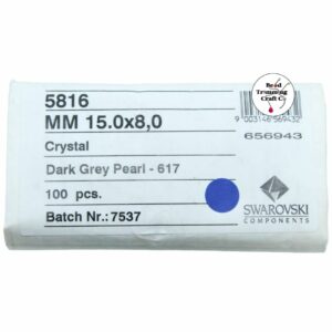 Swarovski 5816 – Drop – Half Drilled – 15 x 8mm – Dark Grey.