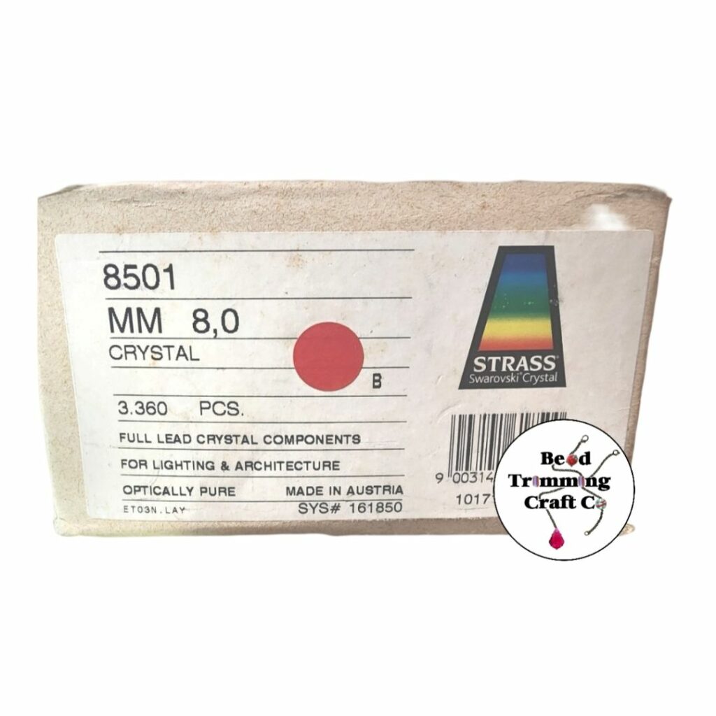 Swarovski 8501 – Half Drilled – 8mm – Crystal.