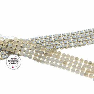Swarovski Crystal Pearl Mesh – 4 Row – 11mm – Nude / Gold – Price per centimeter.