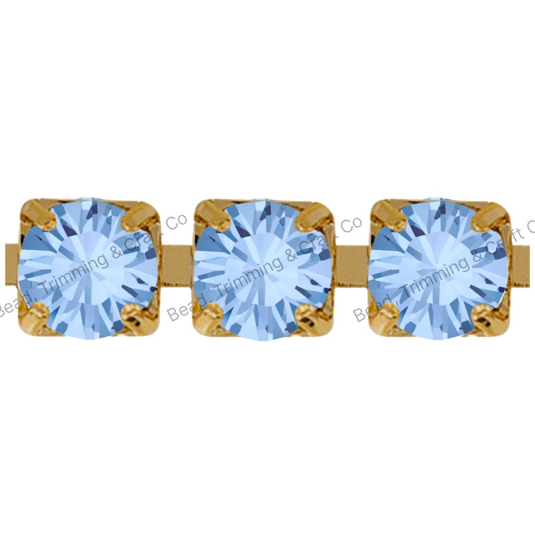 Swarovski Cupchain – 2.1mm – Light Sapphire / No Plating – Price per centimeter.