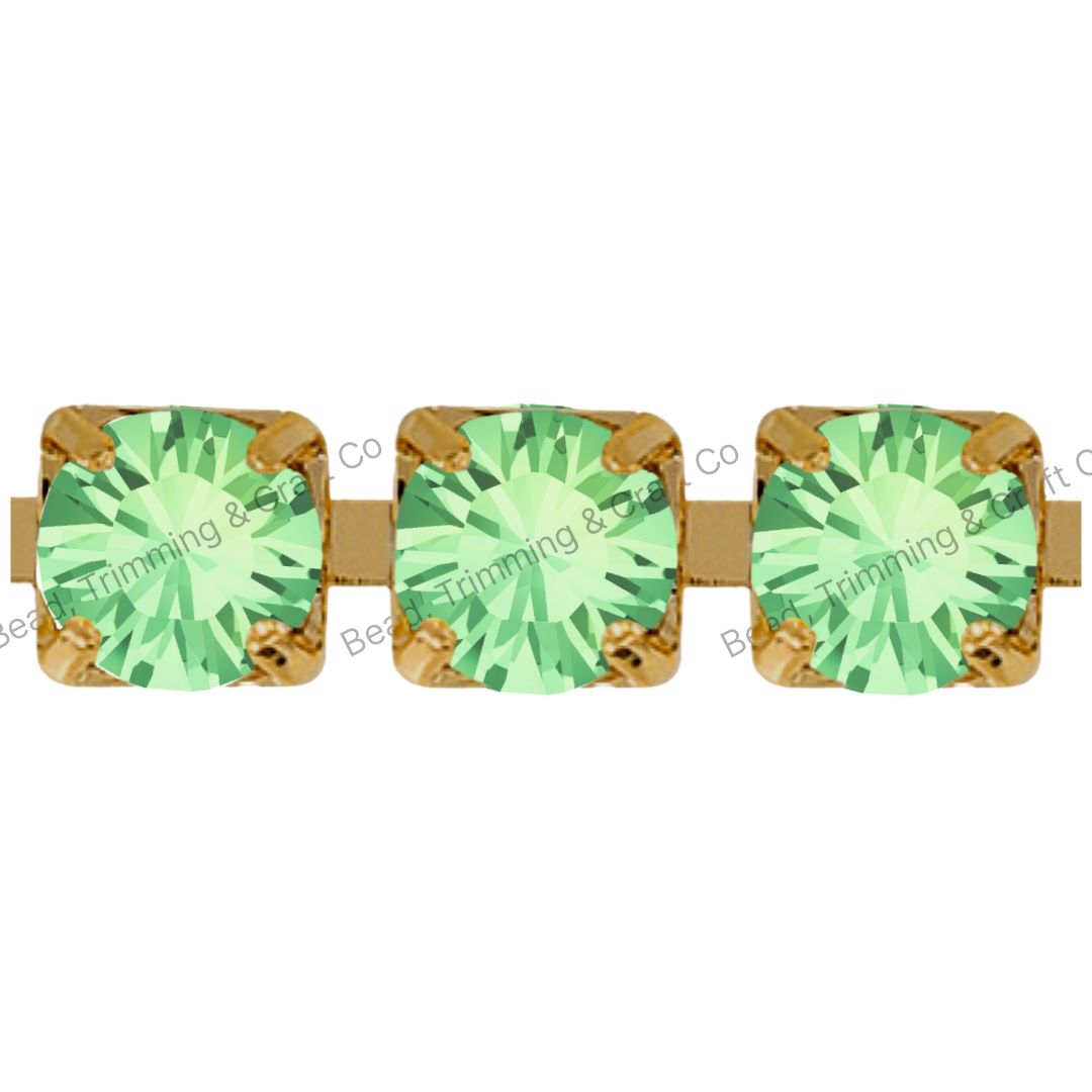 Swarovski Cupchain – 2.5mm – Chrysolite / No Plating – Price per centimeter.