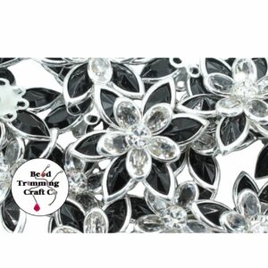 Swarovski Filigree – Flower – 25mm – Sterling Silver / Jet / Crystal.