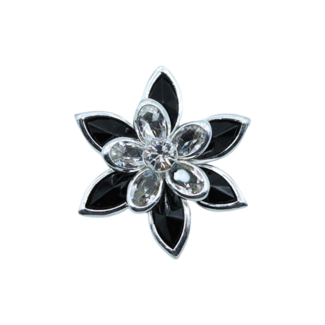 Swarovski Filigree – Flower – 25mm – Sterling Silver / Jet / Crystal.