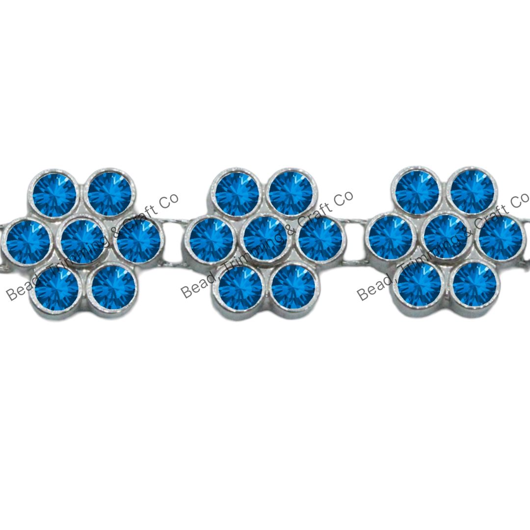 Swarovski Flower Trimming – 11mm – Capri Blue / Antique Silver – Price per centimeter.