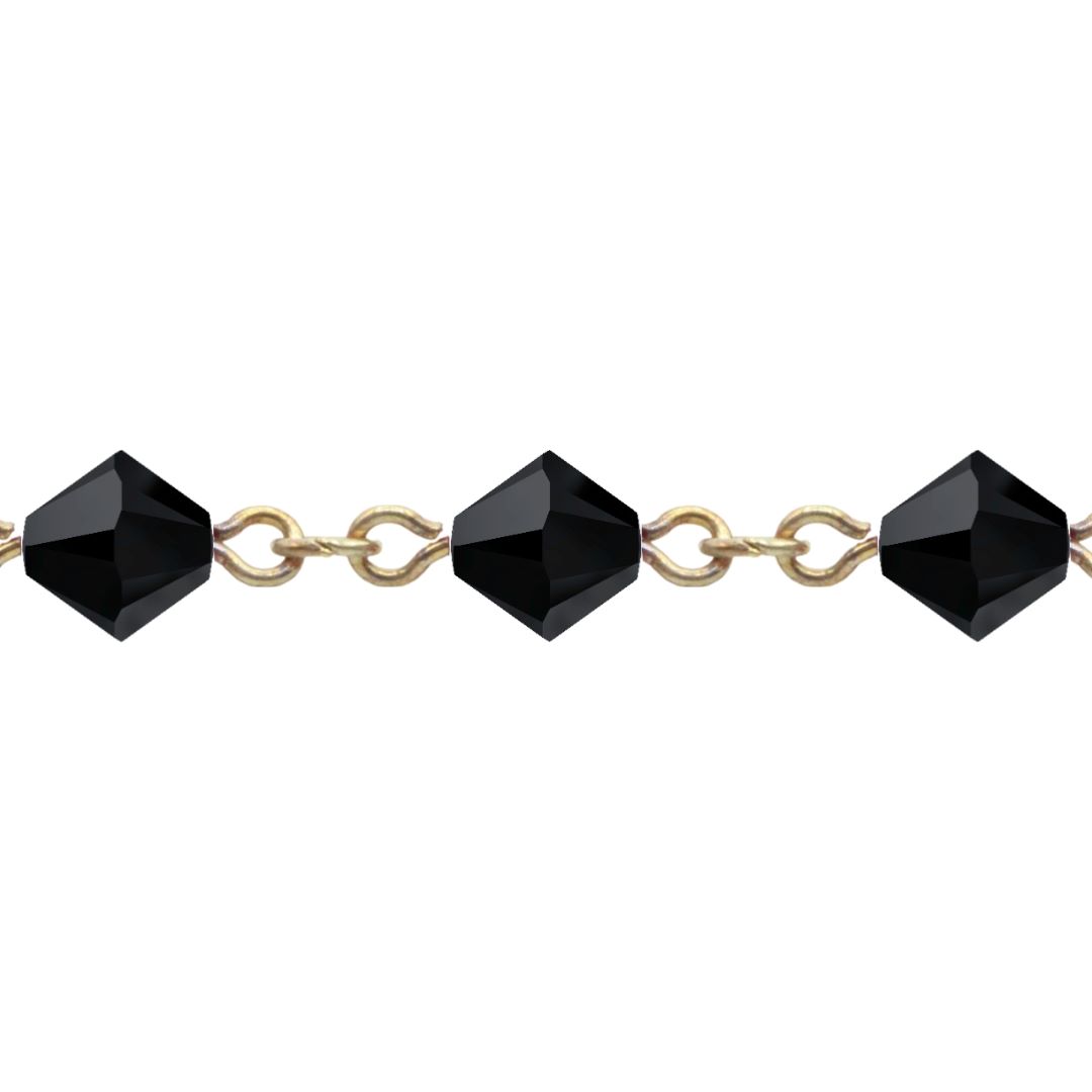Swarovski Looped / Link Chain – 4mm – Jet / Gold – Price per centimeter.