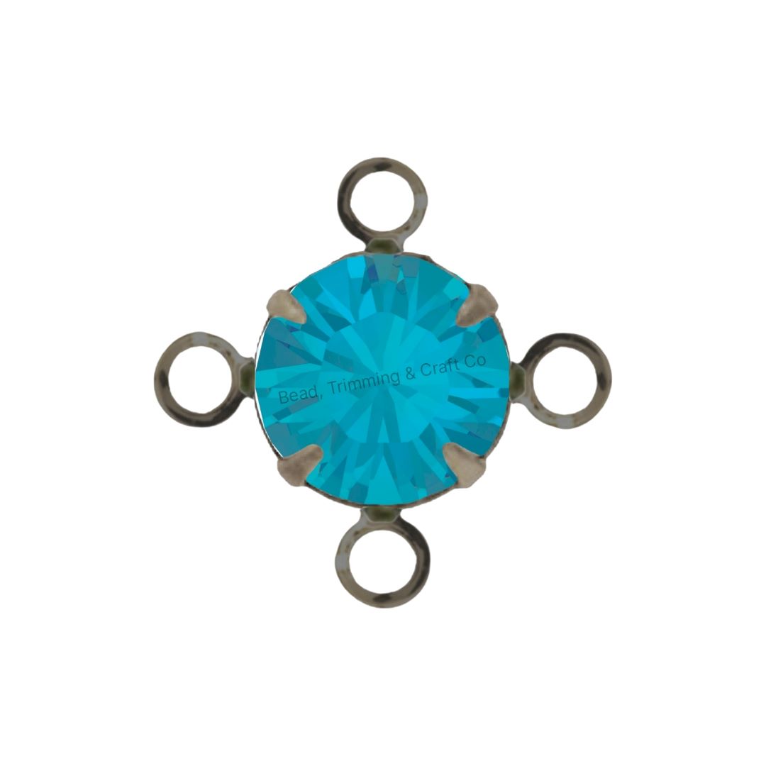 Swarovski Setting – Round – 4 Ring – 6.5mm – Gun Metal / Carribean Blue Opal.