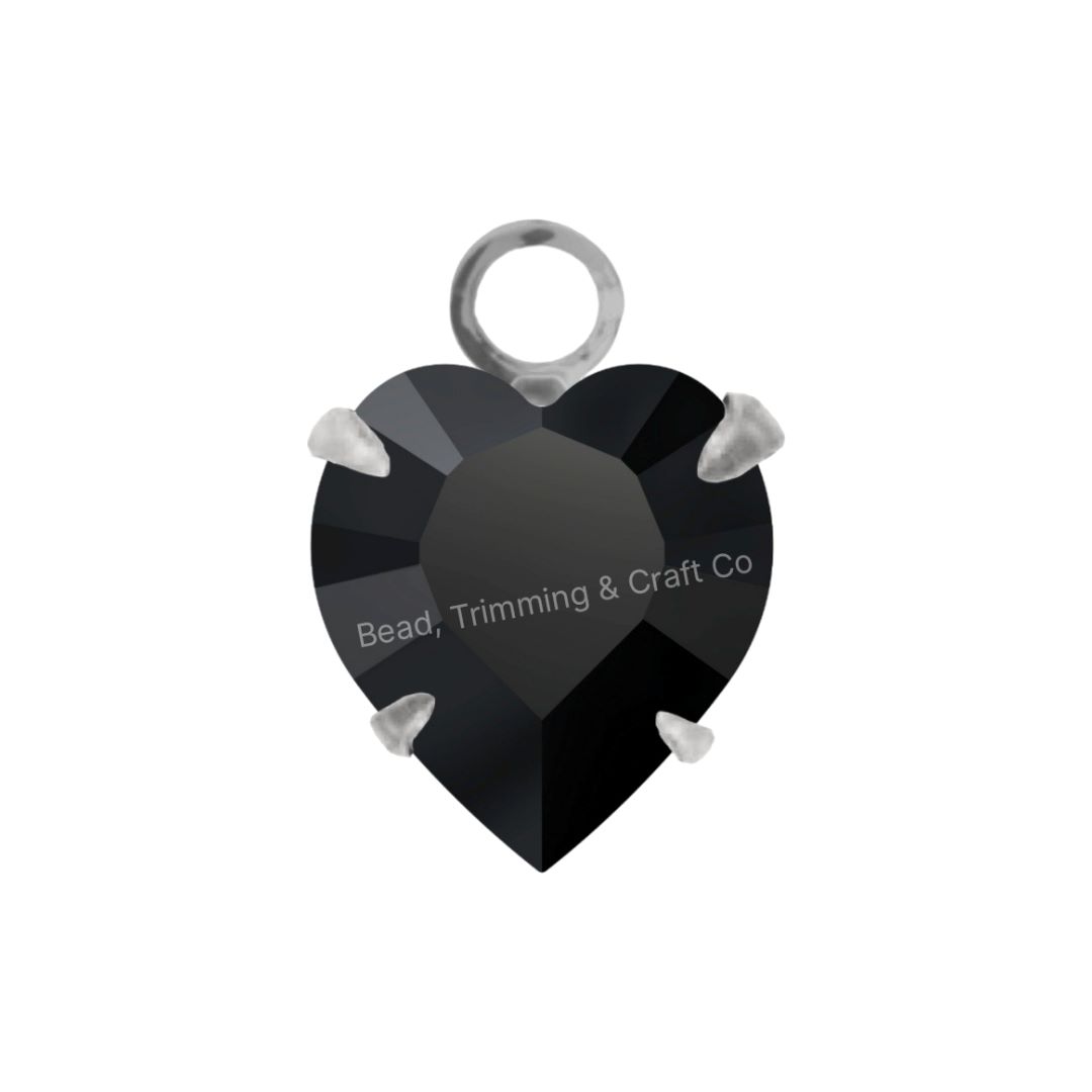 Swarovski Stone – Heart Setting – 8.8mm – Light Platinum / Jet.