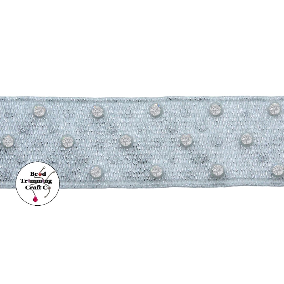 Swarovski Stretch Banding – 30mm – Crystal / Silver – Price per centimeter.