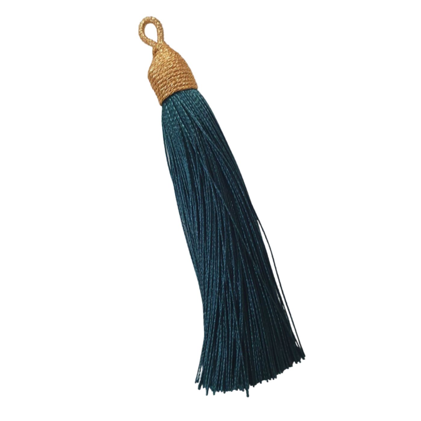 Tassel With Gold Cap – 8cm – Green. Gold Metallic wired tinsel cap.