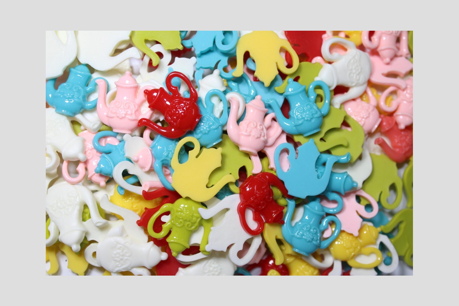 Tea Pot – 20mm – Mix Colour. Plastic. No holes. Flat back.