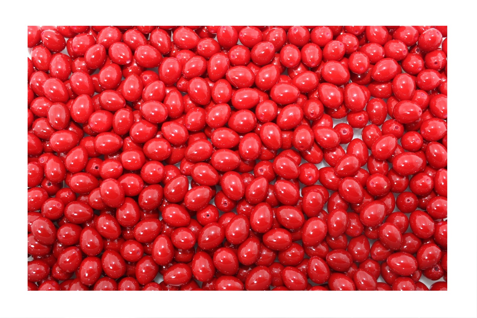 Tear Drop – 7 x 9mm – Dark Red. Glass bead. Hole runs from top to bottom.