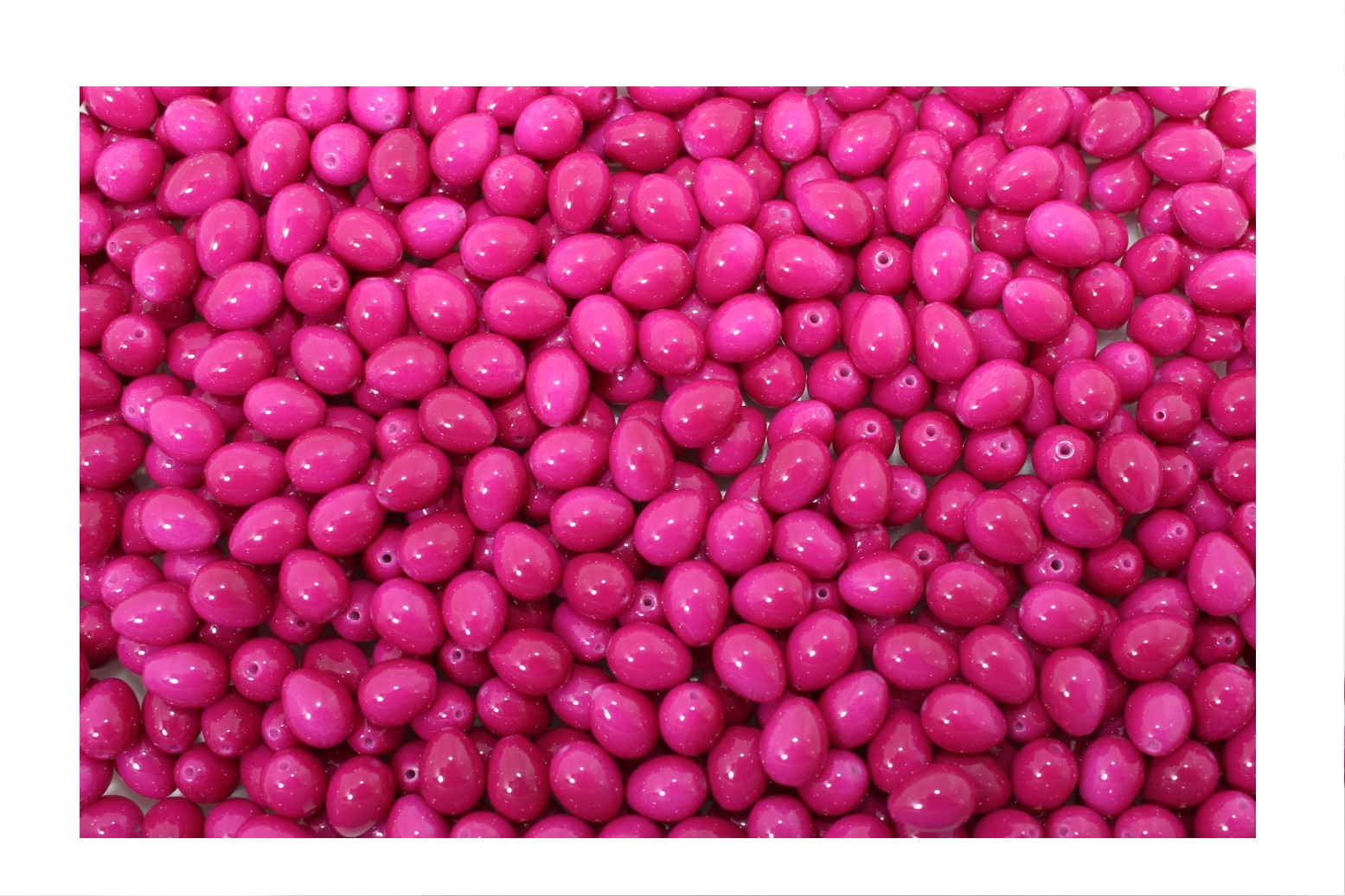 Tear Drop – 7 x 9mm – Fuchsia. Glass bead. Hole runs from top to bottom.