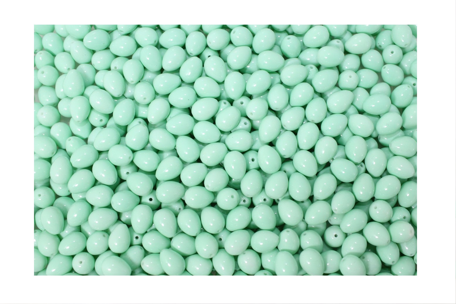 Tear Drop – 7 x 9mm – Mint. Glass bead. Hole runs from top to bottom.