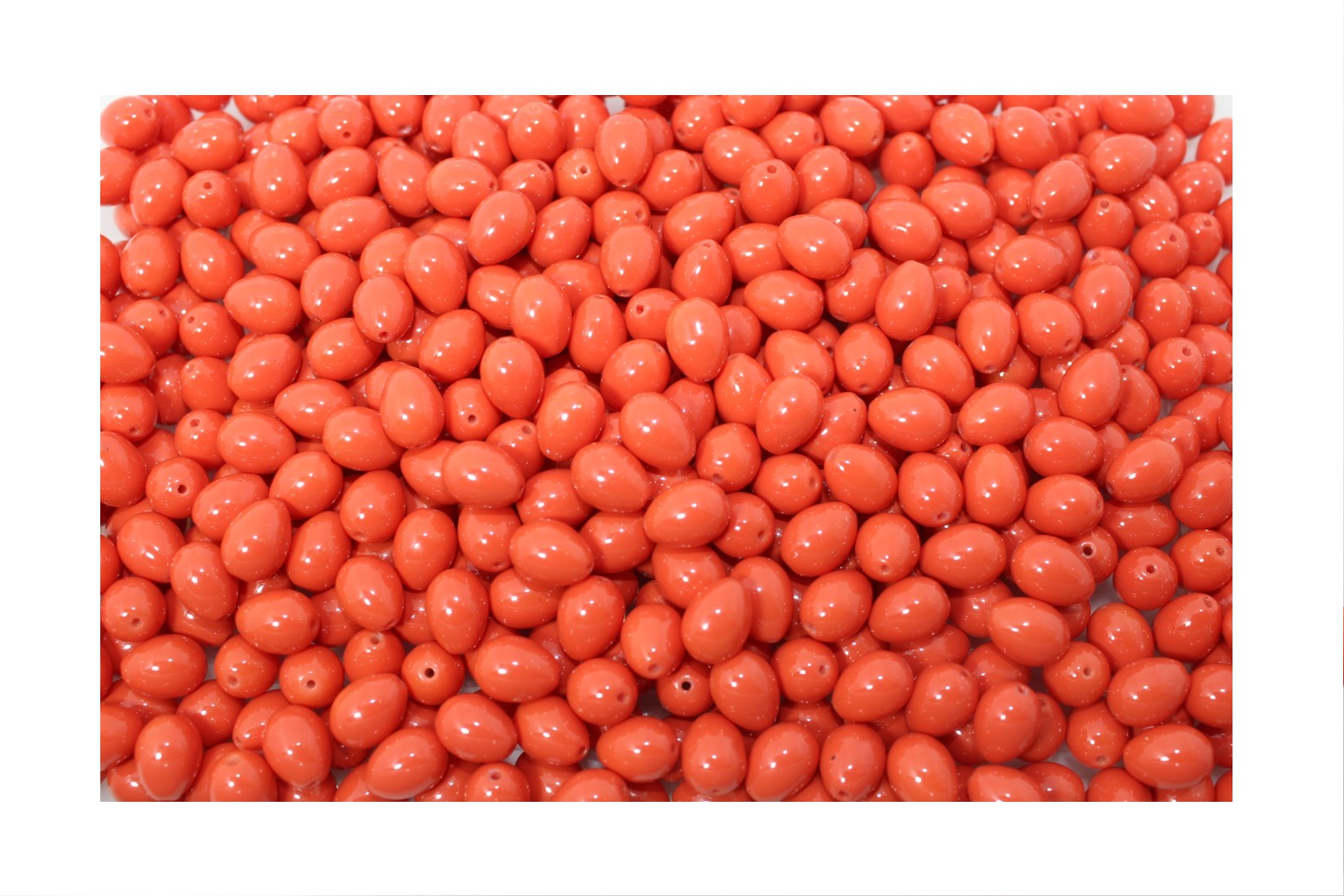 Tear Drop – 7 x 9mm – Orange. Glass bead. Hole runs from top to bottom.