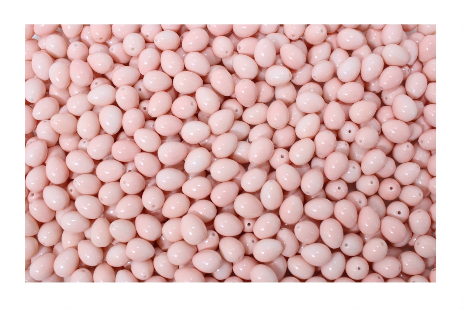 Tear Drop – 7 x 9mm – Pink Coral. Glass bead. Hole runs from top to bottom.